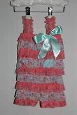 Lace and Satin Romper - Apricot/Mint