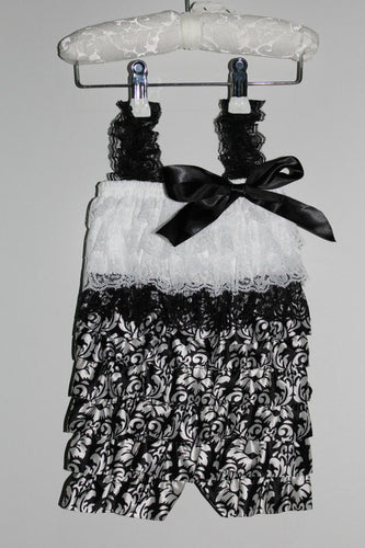 Lace and Satin Romper - Black and White